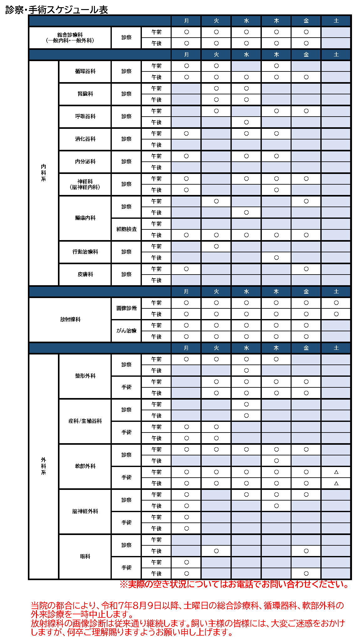 口腔外科、心臓血管外科、呼吸器外科、消化器外科、肝臓外科、腎泌尿生殖器外科、内分泌器外科、形成外科を含む体表、頭頚部、胸部、腹部、四肢など多くの外科疾患を専門に診察・手術を行っています。