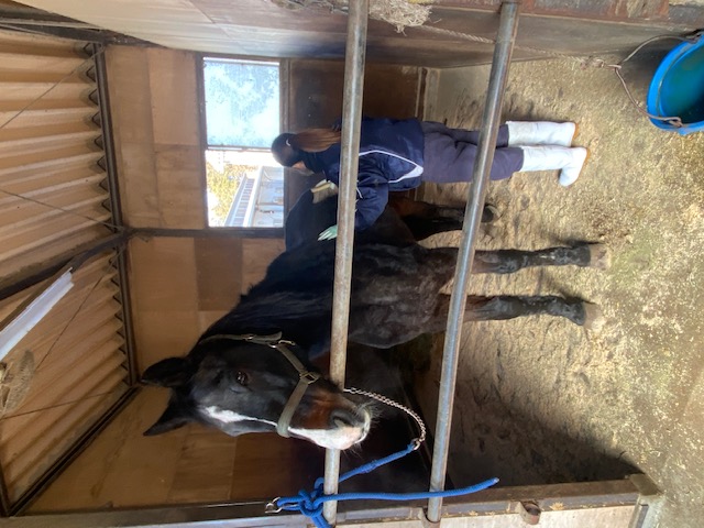 私の研究室の学生が馬のブラッシングをしてくれました。