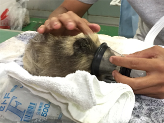 実習中に投薬のため麻酔銃を使用している場面を近くで見学させて頂きました。麻酔銃を使用する際には、動物が急に暴れても怪我をしない場所で行い、針が刺さった後薬液は注入されたか、針はどこに落ちたかなど多くの注意点がありました。残念ながら投薬した個体は数日後に亡くなってしまい、剖検を行いました。剖検をすることで死因を特定し、今後の治療や飼育態勢の向上に繋がります。大型の野生動物では身体検査などを行うことが困難なため病気の早期発見は難しいと考えられます。この件から野生動物の治療の難しさを痛感しました。