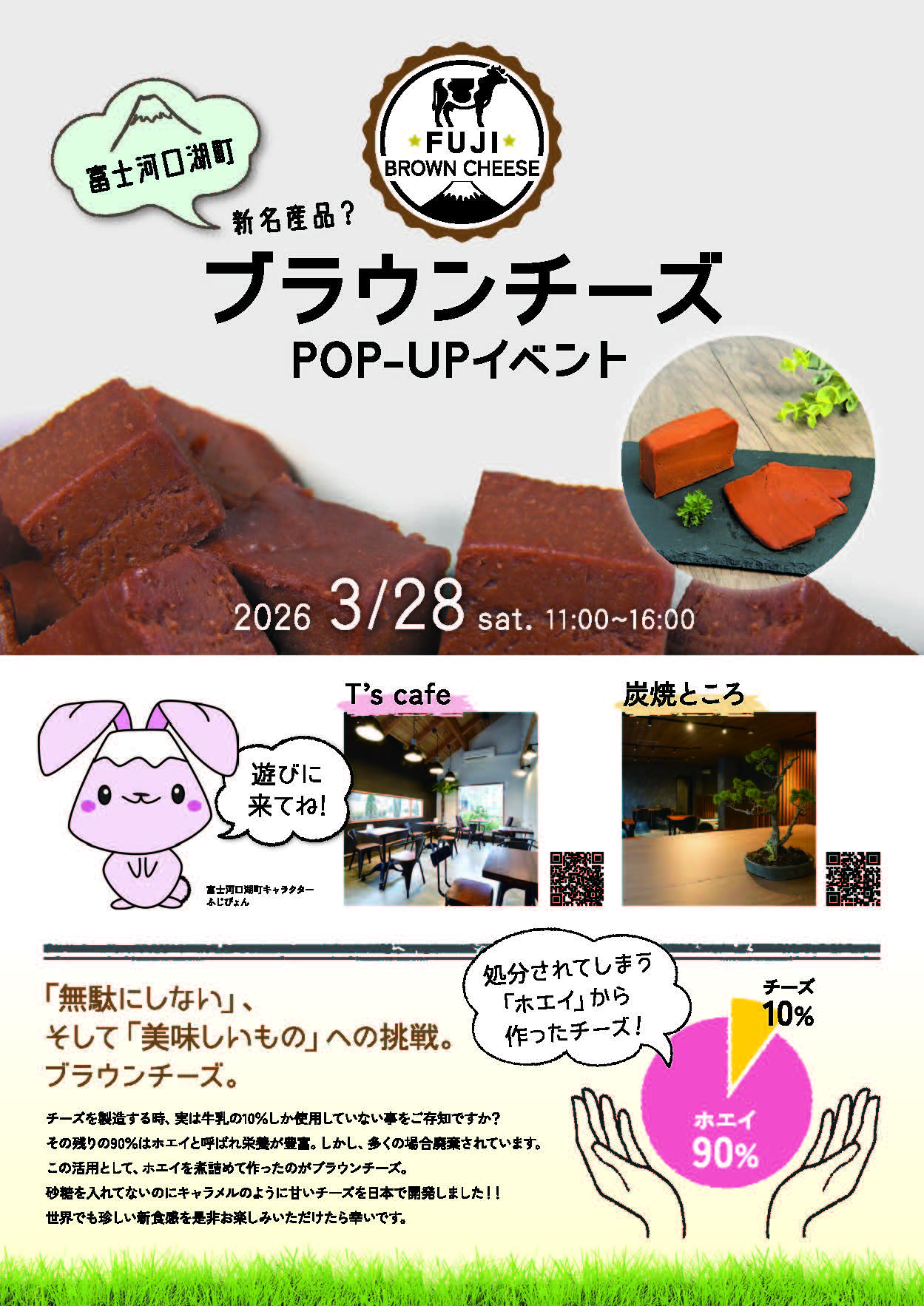 応用生命科学部食品科学科の三浦孝之准教授(乳肉利用学教室)が開発に関わったブラウンチーズを使ったポプアップイベントが河口湖で行われます!
