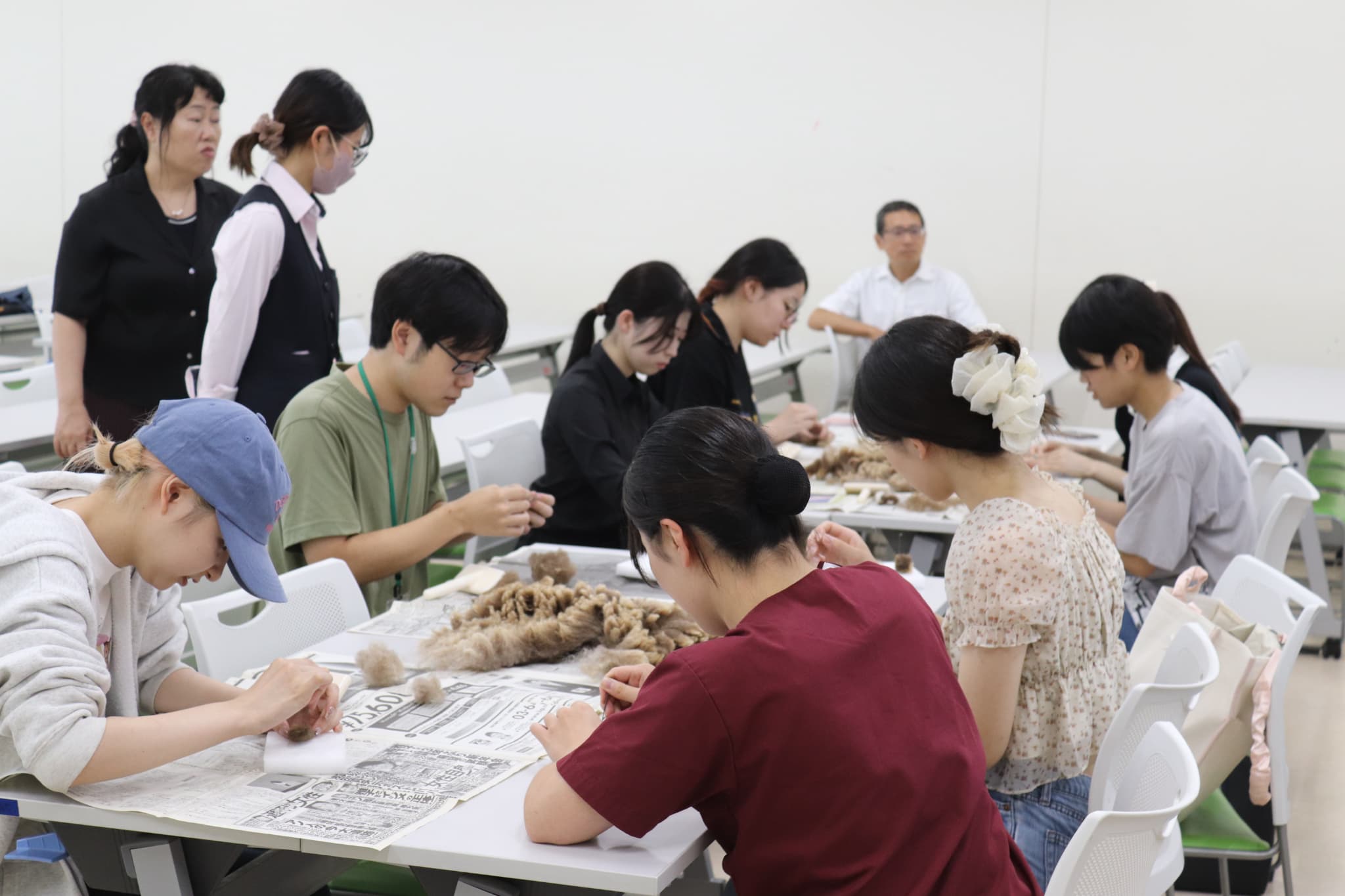 本学 富士アニマルファームの羊毛を使用して羊毛フェルト作品を作製!