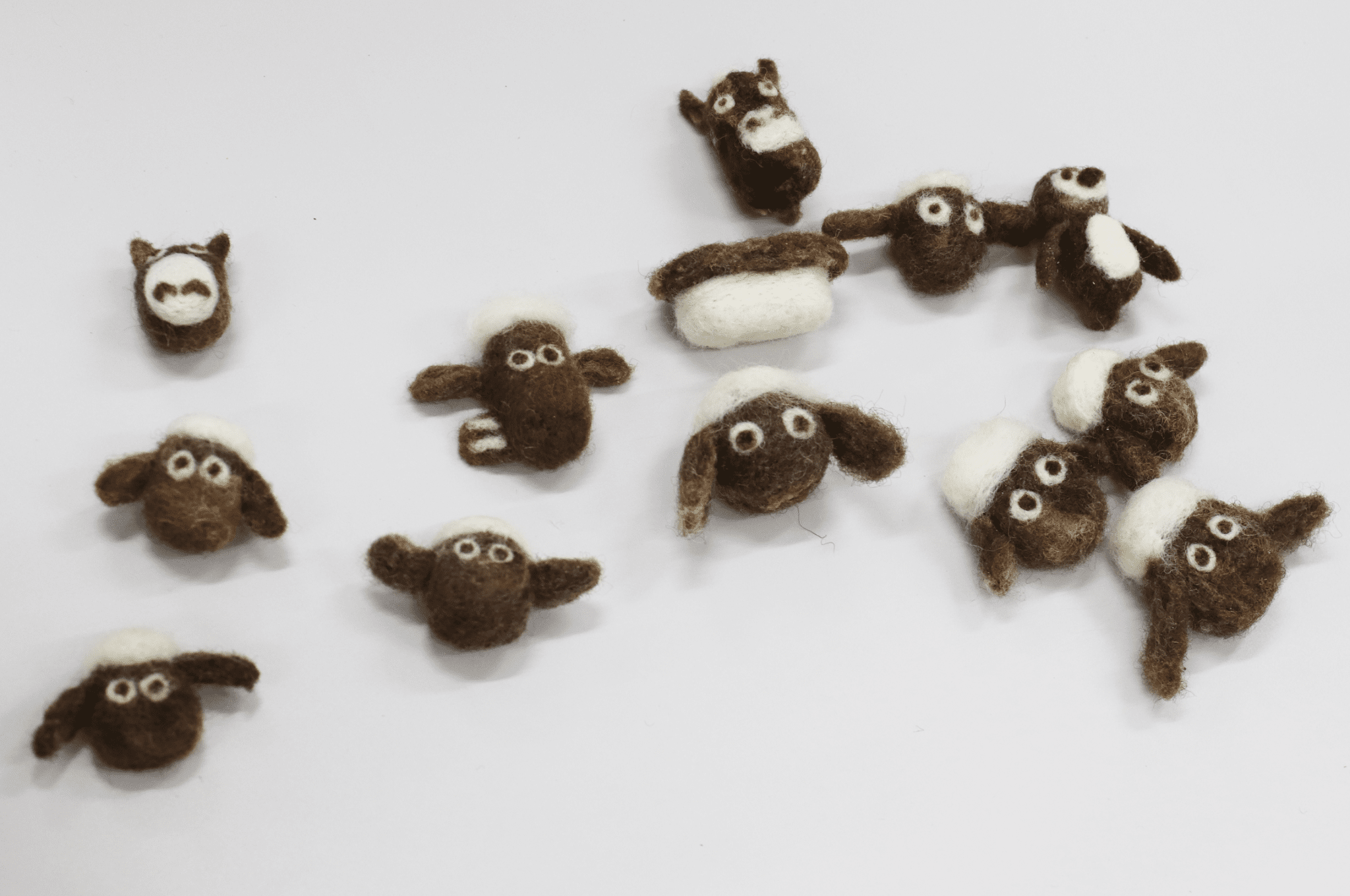 ▲個性豊かな羊毛フェルトが出来上がりました。