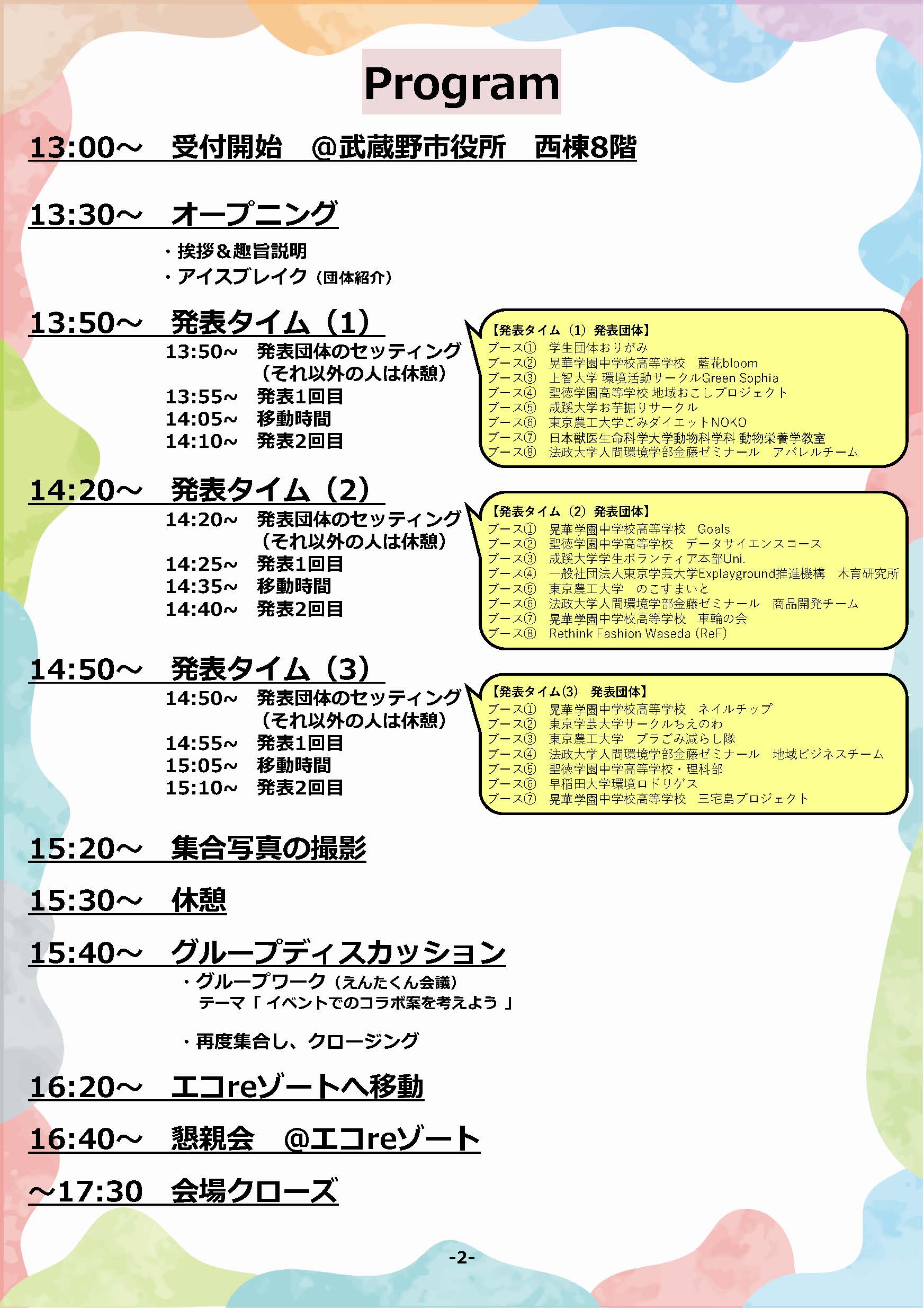 環境活動や社会課題解決に関するテーマに取り組む高校生、大学生が活動内容を紹介し、意見交換を行い、生徒、学生間の交流を図ることを目的に武蔵野市役所で開催されました。