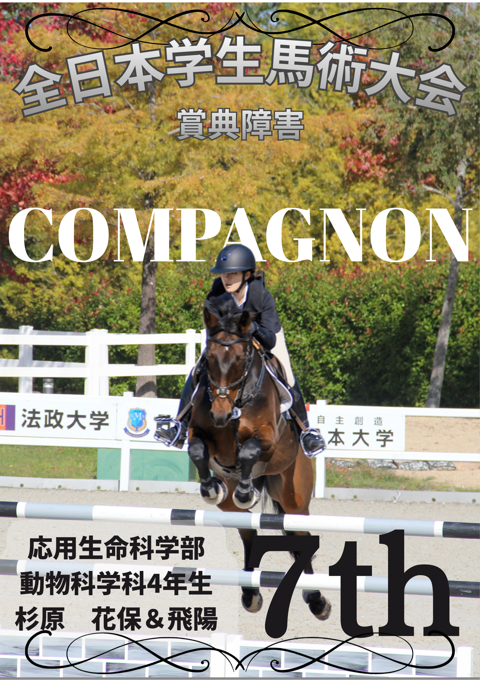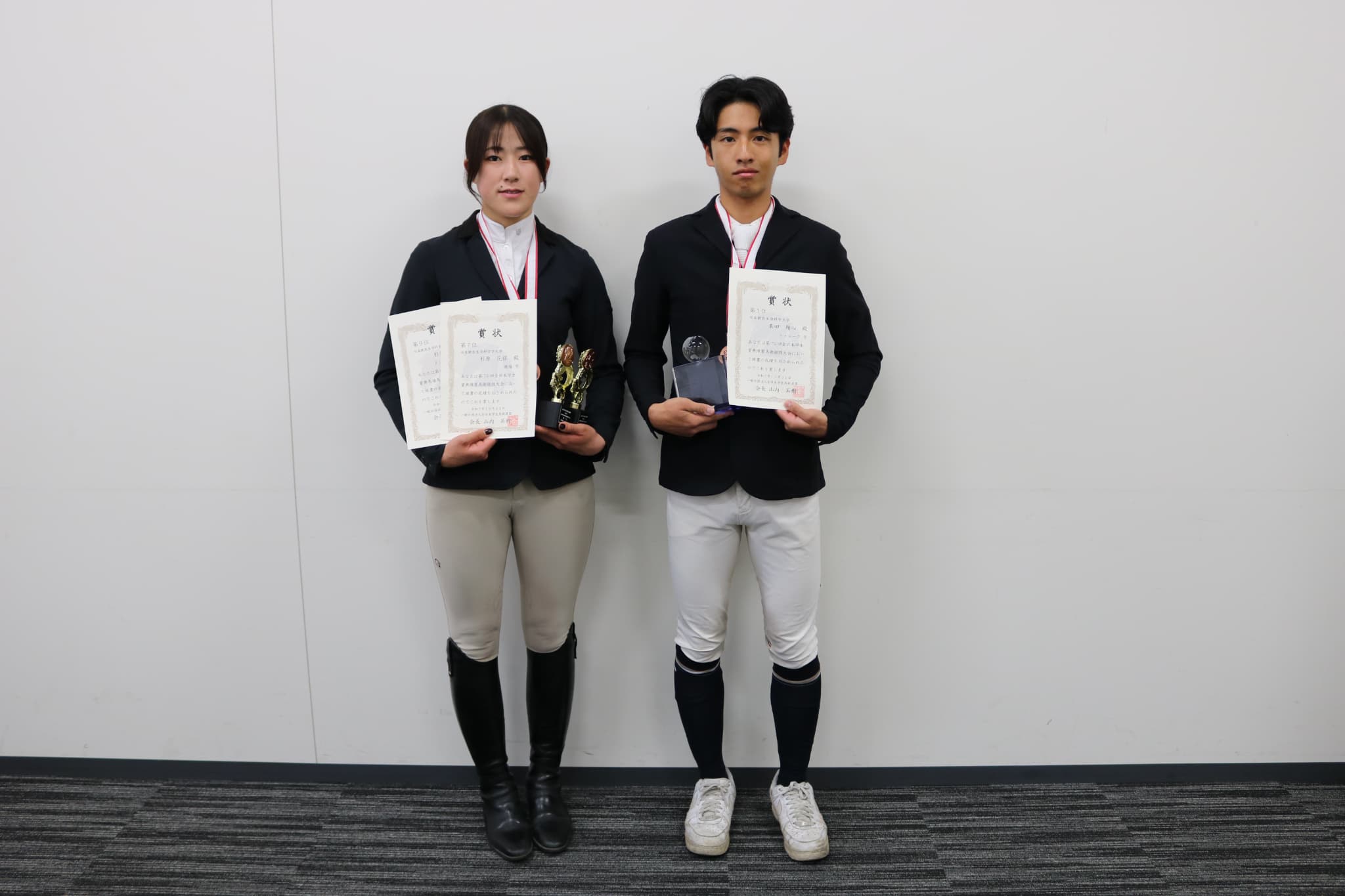 【第75回全日本学生賞典障害馬術競技大会】 優賞 栗田 翔心さん(応用生命科学部動物科学科3年次) 優勝は34年ぶりとなります! 7位 杉原 花保さん (応用生命科学部動物科学科4年次)