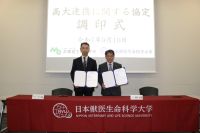 2014年7月1日付けで、本学と山形県農業共済組合(NOSAI山形)は、獣医臨床教育及び学生実習に関する連携と、学術研究における交流を目的とした、連携協定を締結いたしました。
