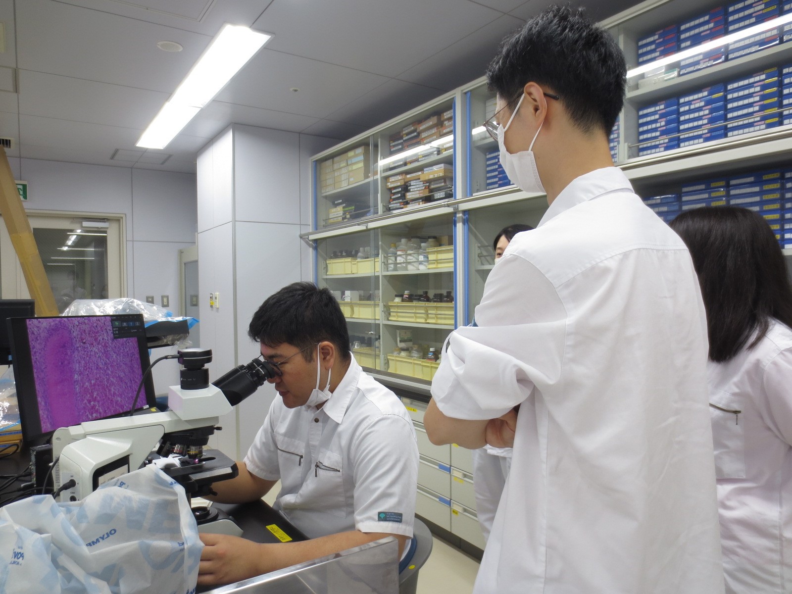 研究室に入ったら研究室の先生方や先輩に病理標本の見方や考え方、標本作製の方法を一から丁寧に教えて頂きました。病理学研究室は下級生がメインで検体を担当することが多く、下級生のうちから色々な病気を勉強することができました。学生の自分では分からない症例については専門資格を有する先生に聞くことが可能で、先生と様々な症例についてディスカッションしたことを覚えています。