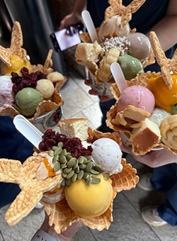 台中では宮原眼科という有名なアイスクリーム屋さんがあり、実習後に行ったのですが調子に乗って1人3つずつアイスを頼んだらインスタ映えはしましたがかなり量が多かったです。※もちろん食べきりました。